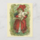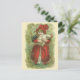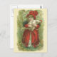 Une douce imagerie victorienne ancienne montrant l'amour et l'appréciation de l'époque pour la nature et l'extérieur. Petite fille habillée en rouge tenant un poulet. carte postale idéale pour créer un faire-part d'affaires proposant des poussins d'origine ou des oeufs bio !