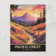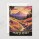 Carte postale Pacific Crest. Coucher de soleil sur la piste de crête pacifique avec des montagnes derrière. Carte postale de voyage illustrée