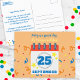 Célébrez un jour spécial avec notre carte postale d'anniversaire vibrante et personnalisable ! Ce design arbore un style graphique ludique et festif, parfait pour marquer des étapes mémorables. Au cœur de la carte postale se trouve une charmante illustration d'un calendrier, avec une date spécifique encerclée pour honorer le grand jour de la personne qui fête son anniversaire. Le nombre « 25 » est visible dans un cercle, symbolisant la date, tandis que le mois « SEPTEMBRE » est écrit en lettres majuscules grasses en dessous.