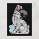 Lapin de Pâques foncé et pointu avec des oeufs et un soleil avec des palmiers.