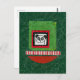 Panda amusant sur des éléments de collage vert et rouge, rayures rouges et blanches, tous assis sur un arrière - plan vert très texturé.