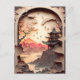 Une belle carte postale à thème brun avec décor découpé en papier représentant l'ancienne construction chinoise, les arbres, les montagnes et le lac.