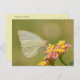 Carte postale offrant une vue latérale d'un joli papillon blanc sur des fleurs de lantana roses et jaunes pendant la journée d'été. Photo prise à Pasadena, Californie.
