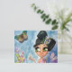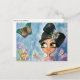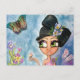 Carte postale adorable avec une grande beauté tropicale aux yeux qui aime les papillons et les fleurs.