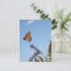 Le papillon monarque décolle d'un buisson papillon contre un ciel bleu