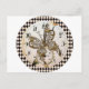 Art numérique rond avec bordure en arlequin, face à horloge antique et papillon en métal de style Steampunk