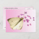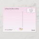 Cette carte postale présente l'exquis papillon de chou (Pieris rapae). Elle a arrêté de flâner dans le jardin assez longtemps pour se percher sur une verveine en fleurs. Elle a un corps noir qui ne montre pas sous ses quatre ailes blanches, chacune avec un point noir au centre. Les deux ailes supérieures ont une bande noire au bout. Son visage est vert pâle. Bien qu'elle soit une créature charmante et délicate, ses chenilles dévorent les choux et d'autres membres de la famille des légumes brassica. L'inverse a un petit papillon sur un arrière - plan de dégradé rose pâle.