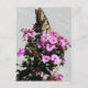 Un papillon monarque sur une carte postale rose Morning Glories