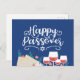 Cette carte postale présente un design festif et accueillant, parfait pour la célébration de la Pâque. "Happy Passover" est élégamment scénarisé dans une police blanche, ludique et fluide qui apparaît contre le riche arrière - plan bleu marine. Le design incorpore des éléments traditionnels de la Pâque comme le matzah, illustré de détails fins, et une étoile de David, fournissant un lien clair avec les traditions de la fête. Sous la salutation, un éventail de verres à vin, symbolisant le vin cérémonial consommé pendant le Seder, ajoute une touche sociale et festive à l'imagerie. Des sources de verdure et de petites fleurs entrecoupées autour des verres à vin apportent une sensation de printemps et de renouveau. Les fleurs rouges et blanches apportent une touche de couleur, contrastant magnifiquement avec le fond bleu profond, complétant le design avec un sens de la chaleur et de la joie caractéristique de la réunion de vacances.
