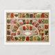 Cette carte postale est la reproduction d'une publicité vintage pour les fruits, les légumes et les graines de fleurs.