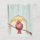 Sous la pluie cool gris/bleu, un joyeux petit oiseau rouge se séche sous un parapluie jaune ensoleillé ! L'original est une aquarelle peinte à la main par moi.