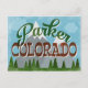 Parker Colorado néo vintage poster de voyage art mur en style rétro dessin animé. Il comprend des montagnes enneigées et la forêt en dessous avec un texte amusant et joyeux rétro.