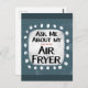 « Parlez-moi de ma friteuse à air » est un dessin de texte amusant avec une forme d'accent blanc entourée de points texturés fantaisistes blancs.