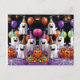 une illustration en 2D d'une fête d'Halloween fantaisiste avec d'adorables fantômes. Chaque fantôme doit avoir une expression unique et ludique et porter des casquettes de fête colorés et des accessoires amusants. Entourez-les avec des ballons vibrants