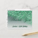 Carte de remerciements glamour avec Parties scintillant verte en chute libre, dégradé vert et étoiles brillantes.
