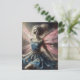 Carte Postale Patchwork fée Denim Robe rose ailes