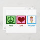 Joli signe de paix, coeur, et un triple scoop de chocolat, vanille, et crème glacée fraise dans un cône. Une carte postale mignonne de glaces pour une boutique de desserts.