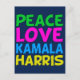 Carte postale mignonne Peace Love Kamala Harris pour un démocrate progressiste qui aime les desseins politiques amusants et colorés. Vote pour Kamala à la présidence à l'élection de 2024. Un design libéral amusant dans des couleurs vives.
