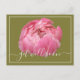 Superbe photo de gros plan d'une magnifique pivoine rose avec des gouttes de rosée sur un fond vert. La fleur recouvre l'avant de cette carte postale qui peut être utilisée comme carte de remerciements, carte d'anniversaire ou toute autre carte de votre choix. Customisez-le avec votre texte et/ou vos images pour en faire un unique !