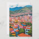 Cette carte postale présente un tableau lumineux et coloré de Medellin, en Colombie.