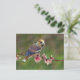 Une finche jaune pâle, noir et blanc avec des plumes d'ailes bleues et un bec lourd - un casse-noix volant! En fait, en français, il est connu comme le noisette grosbeak. Illustration numérique d'une photo d'un oiseau perché sur une branche de fleur rose. Art numérique par france rurale.