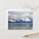 En regardant à l'est de Sandpoint, traversez le lac Pend Oreille (étang oh-ray) par un jour d'hiver; montagnes enneigées au loin. La glace s'est formée sur le rivage et s'étend à une partie du lac. Le blues et le gris sont les couleurs dominantes. Photo prise par l'artiste.