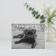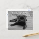 Qui peut résister au visage mignon d'un chiot Carlin ? Cette carte postale présente une photo en noir et blanc d'un chiot en carlin noir posé sur un porche.