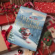 Père Noël parcourt une pente enneigée, laissant derrière lui un sentier tandis que l'air hivernal se précipite devant lui.