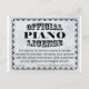 Permis de piano officiel. Il existe de nombreuses activités impliquant divers équipements, tels que la conduite d'une automobile, d'un avion, etc., qui nécessitent une formation spécialisée et des licences. Faire de la musique est quelque chose qui nécessite généralement une formation : des leçons, de la pratique et des répétitions. Ne devrait-il pas être exigé des musiciens en herbe qu'ils reçoivent une licence pour utiliser l'équipement, c'est-à-dire leur instrument de musique ?