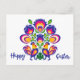 Carte postale de Pâques joyeux avec composition folklorique et deux coqs intrépides et deux œufs de Pâques appelés Pysanka. Design inspiré de l'art populaire polonais de la région de Lowicz. Le texte au verso est entièrement personnalisable. Tout ce que vous avez à faire est de signer en bas et la carte postale unique est prête à faire sourire quelqu'un.