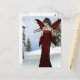 Fée d'hiver de vacances dans une robe rouge brillante profitant de la neige.