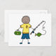 Ce petit pêcheur affiche fièrement la pêche du jour. Quelle gentillesse de décorer l'équipement de pêche de votre petit.