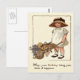 Carte Postale Petite fille mignonne Fleurs de brouette