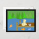 Un mignon petit ours assis sur un quai avec son poteau de pêche. On dirait qu'il a attrapé un poisson ! Des couleurs vives accentuent cette carte postale amusante.
