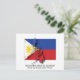 Carte postale élégante et patriotique du Joyeux Jour de l'Indépendance avec un TEXTE PERSONNALISABLE pour célébrer la Fête de l'Indépendance des Philippines le 12 juin. Le dessin montre la carte philippine esquissée en 3D effet sur le drapeau des Philippines. Sous il y a le texte personnalisable qui lit MALIGAYANG ARAW NG KALAYAAN. Vous pouvez également personnaliser le message à l'arrière. Offres assorties disponibles.