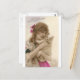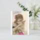 Belle jeune femme avec son petit chien blanc sur une vraie carte postale française antique pour la Saint Catherine's Day. J'ai personnalisé restauré l'image.