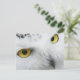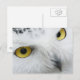 Chouette blanche enneigée aux yeux jaunes piercing.