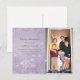 Carte postale photo de vacances Snowflake, simple mais fantasque, avec un éventail de fleurs tourbillonnantes et de flocons de neige sur un look arrière - plan lavande aquarelle. Cette carte postale élégante est facile à customiser avec une photo et votre accueil de Noël personnalisé. Cliquez sur "customiser" pour trouver des options de personnalisation supplémentaires. Photographie © Storytree Studios, Stanford, CA