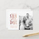 Cette carte postale moderne de date comporte une photo et un poignet en or faux rose ainsi que du texte personnalisable pour vos noms, date mariage et emplacement mariage. Le dos de la carte postale peut être customisé pour inclure un message personnel ou plus de détails mariages.