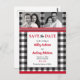 Chalet rustique rouge, bison noir et blanc plaid à damiers mariage photo enregistrer la carte postale date. Idéal pour les hipsters. Ce design amusant est parfait pour un mariage de campagne, de cottage ou d'extérieur.