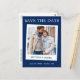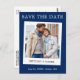 Moderne Simple Rétro Instantané Style Caméra Couple Photo Enregistrer La Date Photo Fiançailles Carte Postale - Navy Blue