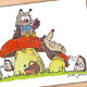 Owly et ses amis pique-niquent sur des champignons géants.