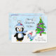 Pingouin de Noël et oiseau mignon avec arbre de Noël et flocons de neige dans la carte postale personnalisée arrière - plan,