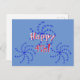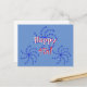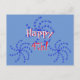 Fireworks offre un accueil "Happy 4th !". Des roues d'étoiles bleues vives entourent le texte qui montre en rouge et blanc avec ombre portée. L'Arrière - plan est d'un bleu moyen.