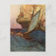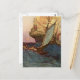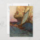 Idéal pour "Talk Lke a Pirate Day" le 19 septembre ! Cette carte postale présente une peinture vintage de Howard Pyle représentant un bateau de pirates sur la mer roulante avec un équipage dans un long bateau à voile.