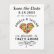 Annoncez votre fiançailles mariage à votre famille et à vos amis avec ce mariage à thème pizza branché sauf la carte postale faire-part date. Ce modèle moderne et design propose deux délicieuses pizzas au fromage, au pepperoni, aux poivrons et aux champignons. Ci-dessus, on lit "Enregistrer la date pour le mariage de" avec vos noms et la date du mariage à personnaliser. Sous les tranches de pizza on peut lire "pizza pie, That's Amore" Le dos de la carte a plus de détails de votre mariage à customiser! Félicitations à votre fiançailles ! Conçu par l'artiste ©Susan Coffey.