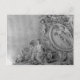 Photo en noir et blanc d'un détail de plafond baroque, prise à Paris, France.