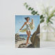 Carte PinUp classique montrant une belle PinUp Girl posant en maillot de bain blanc à la plage, peinte par Arthur Sarnoff (1912-2000)