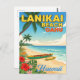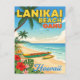 Échappez à la réalité avec cette carte postale vibrante de la plage de Lanikai. Avec des canoës à balancier, des palmiers et des vagues turquoise, cette illustration tropicale capture la beauté sereine de la plage la plus emblématique d'Oahu.