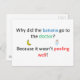 Voulez-vous entendre une blague drôle ? Pourquoi la banane est-elle allée chez le médecin ? Parce qu'il ne peignait pas bien !